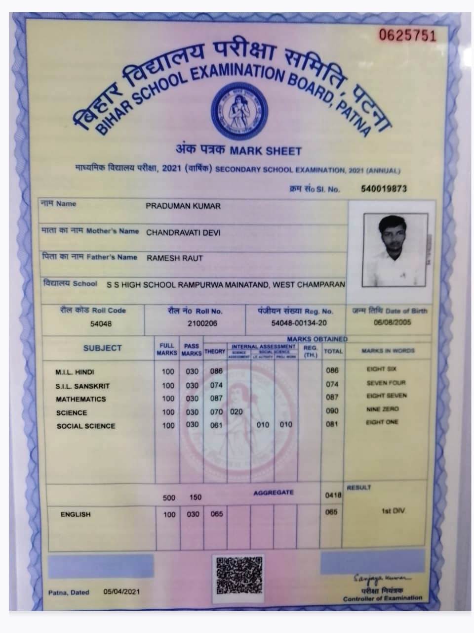 | Exam | Full Marks | Pass Marks | Marks Obtained |