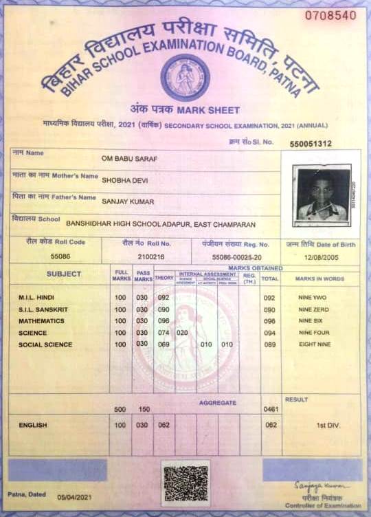| Exam | Full Marks | Pass Marks | Marks Obtained |