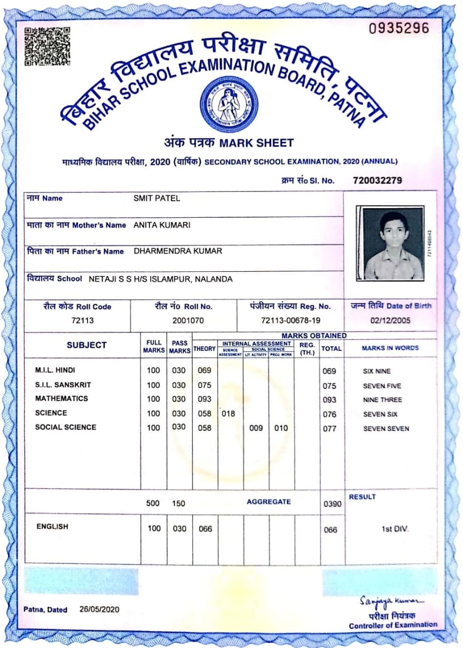 | Exam | Full Marks | Pass Marks | Marks Obtained |