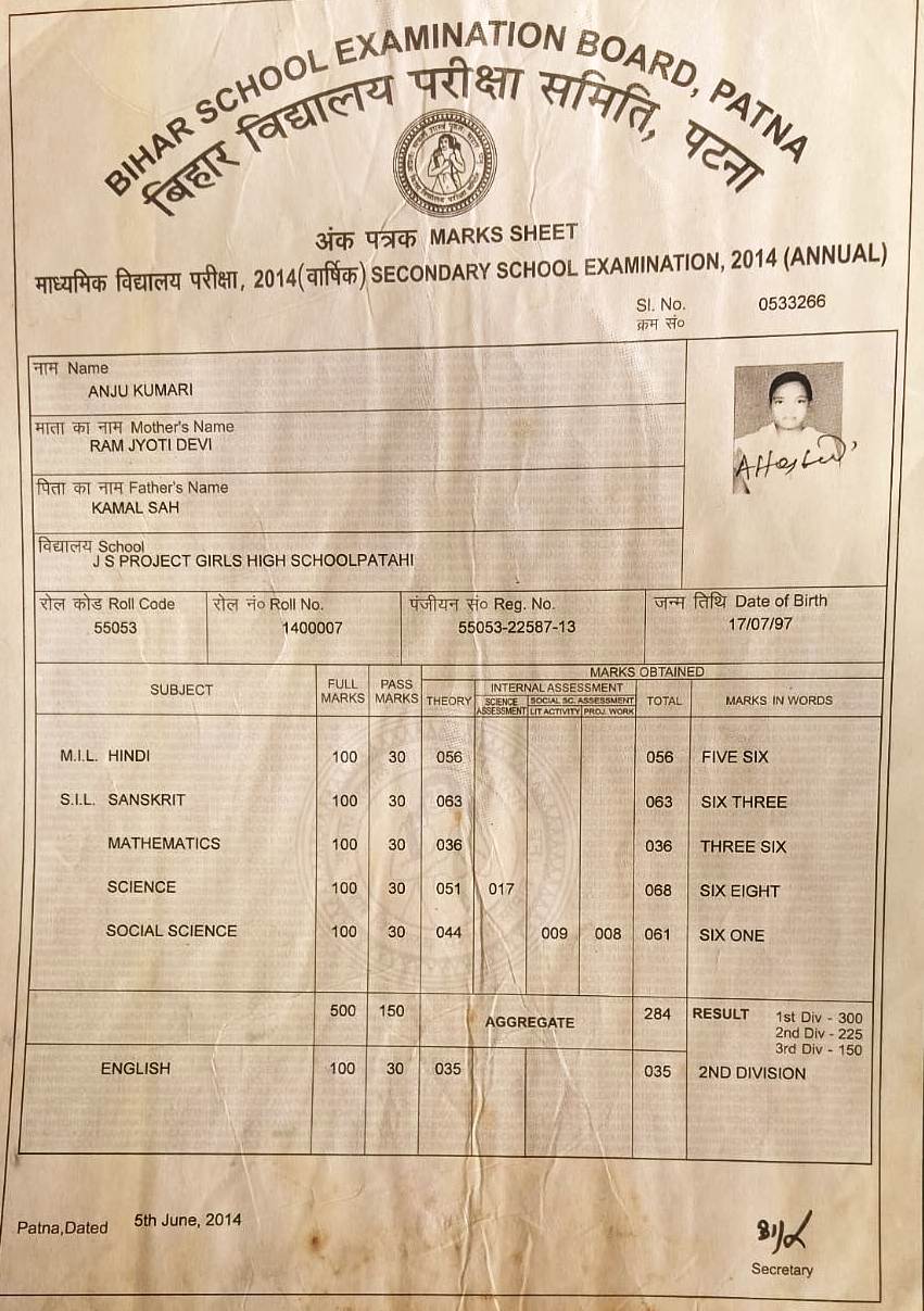 | Exam | Full Marks | Pass Marks | Marks Obtained |
