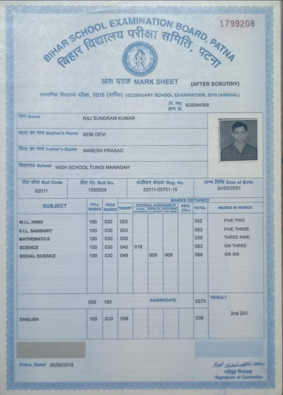 | Exam | Full Marks | Pass Marks | Marks Obtained |