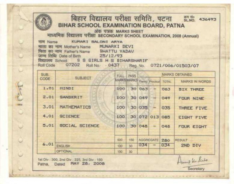 | Exam | Full Marks | Pass Marks | Marks Obtained |
