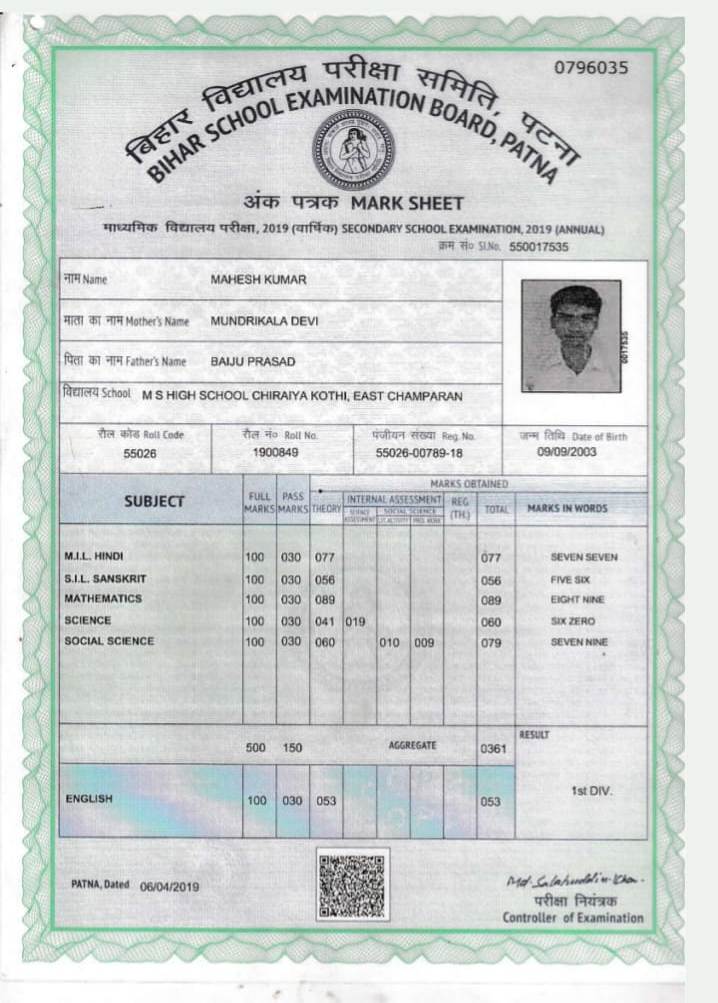 | Exam | Full Marks | Pass Marks | Marks Obtained |