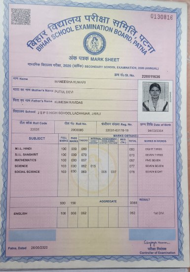 | Exam | Full Marks | Pass Marks | Marks Obtained |