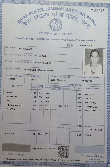 | Exam | Full Marks | Pass Marks | Marks Obtained |