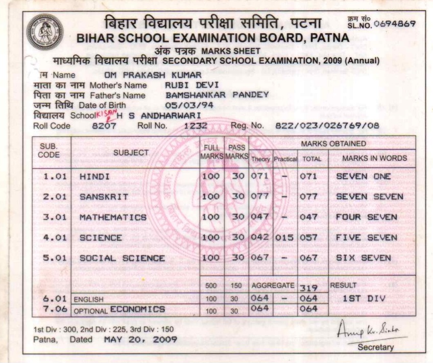 | Exam | Full Marks | Pass Marks | Marks Obtained |