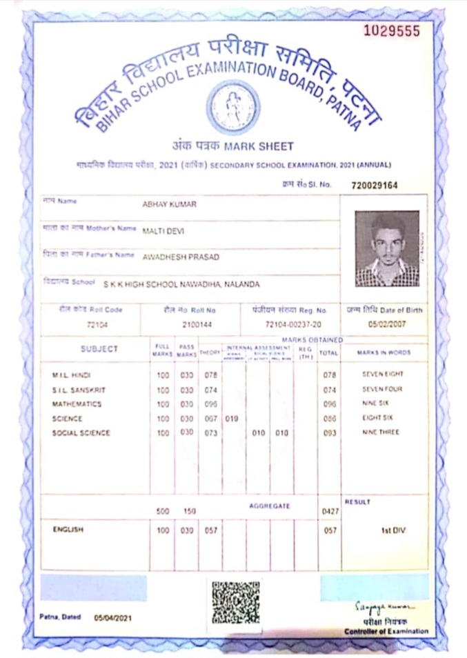 | Exam | Full Marks | Pass Marks | Marks Obtained |
