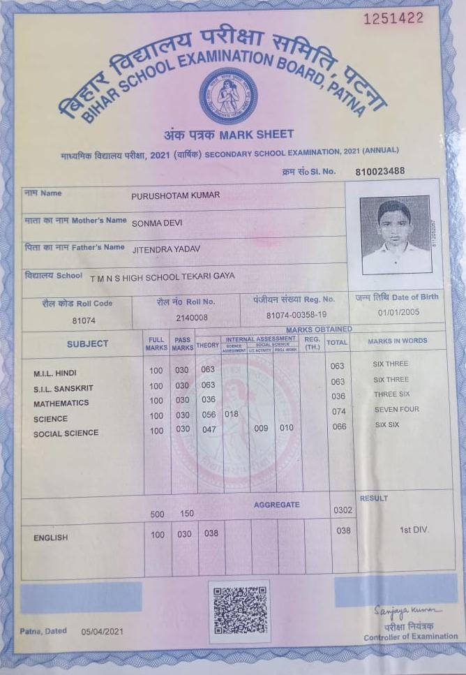 | Exam | Full Marks | Pass Marks | Marks Obtained |