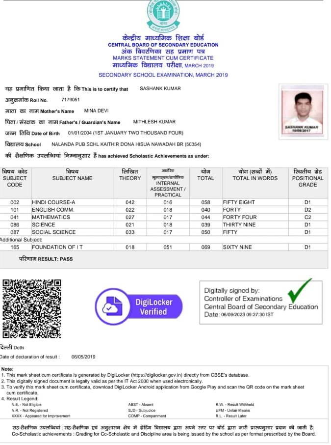 | Exam | Full Marks | Pass Marks | Marks Obtained |