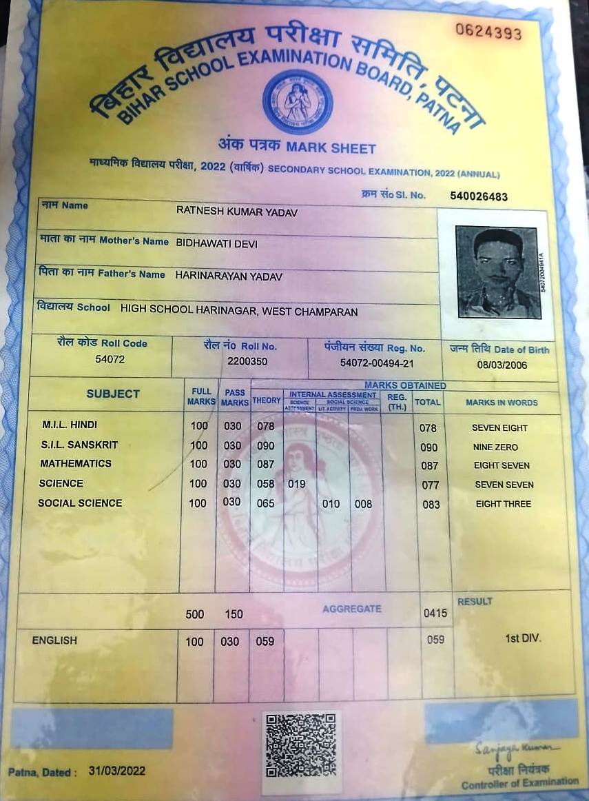 | Exam | Full Marks | Pass Marks | Marks Obtained |