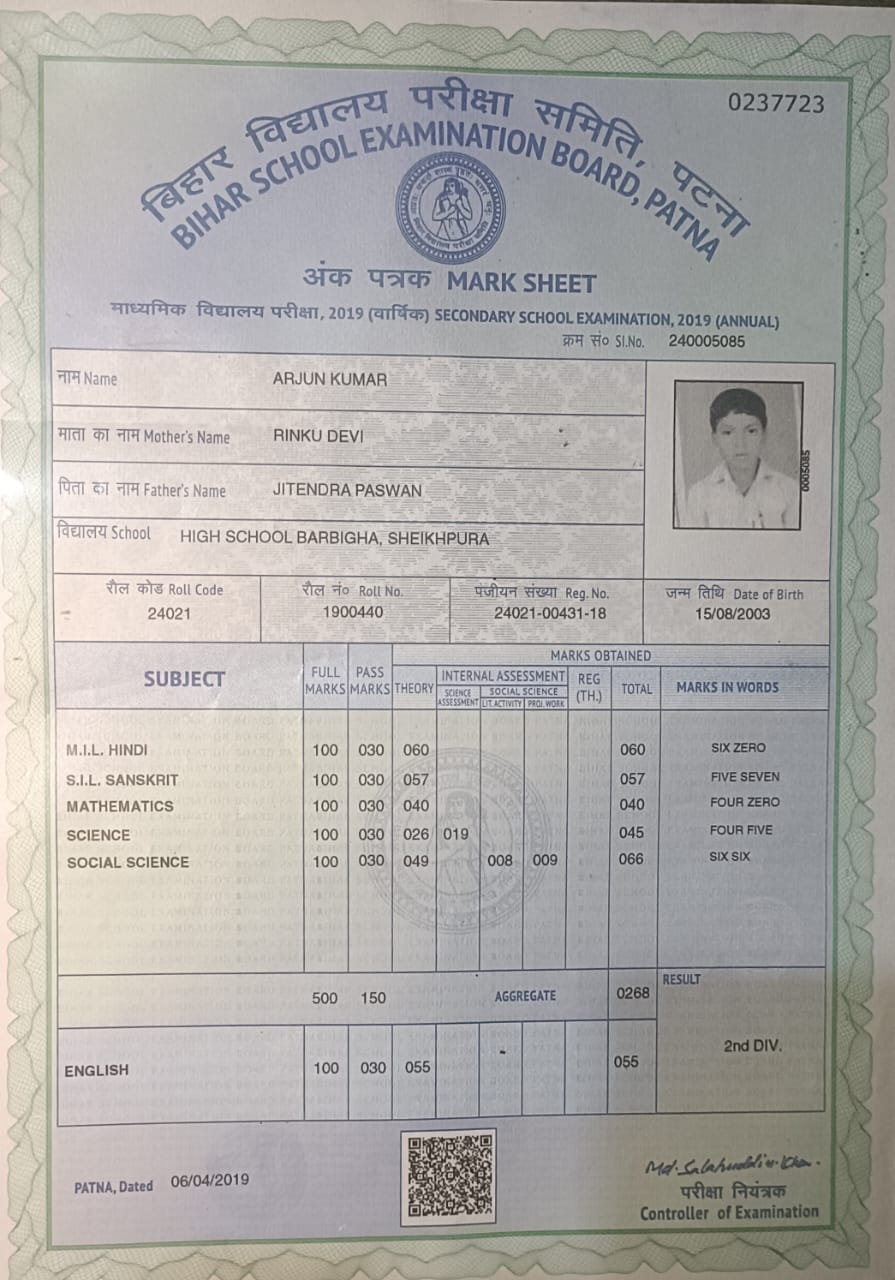 | Exam | Full Marks | Pass Marks | Marks Obtained |