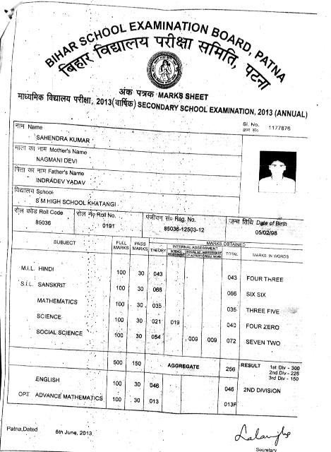| Exam | Full Marks | Pass Marks | Marks Obtained |