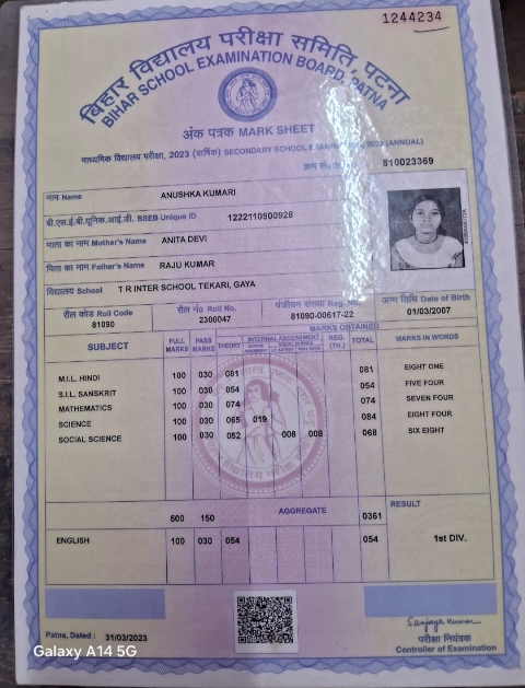 | Exam | Full Marks | Pass Marks | Marks Obtained |