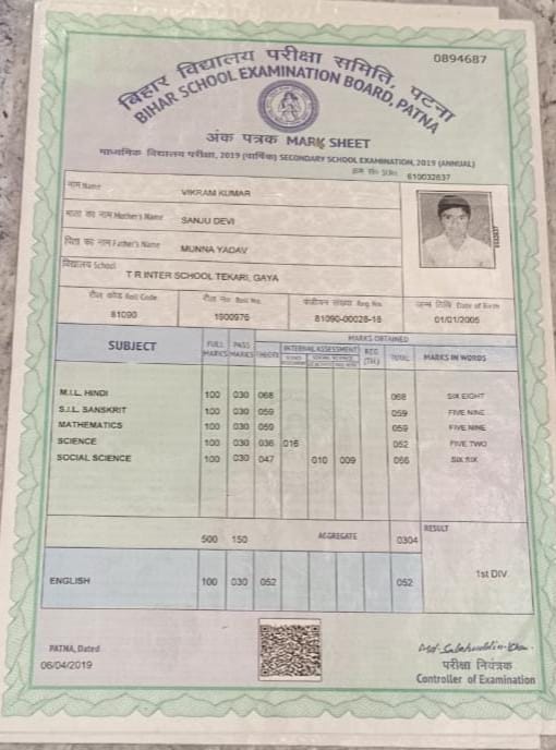 | Exam | Full Marks | Pass Marks | Marks Obtained |