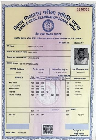 | Exam | Full Marks | Pass Marks | Marks Obtained |