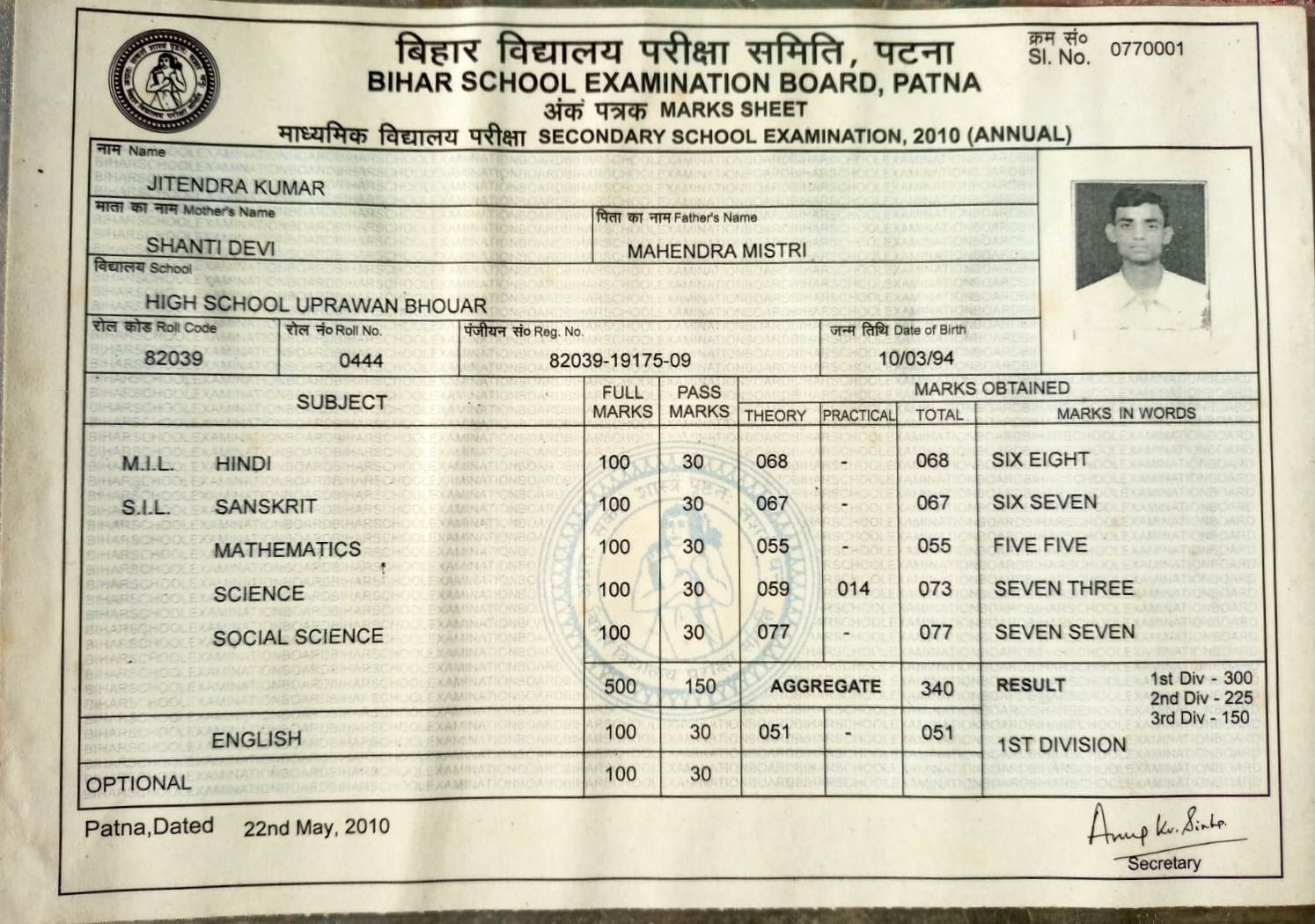 | Exam | Full Marks | Pass Marks | Marks Obtained |