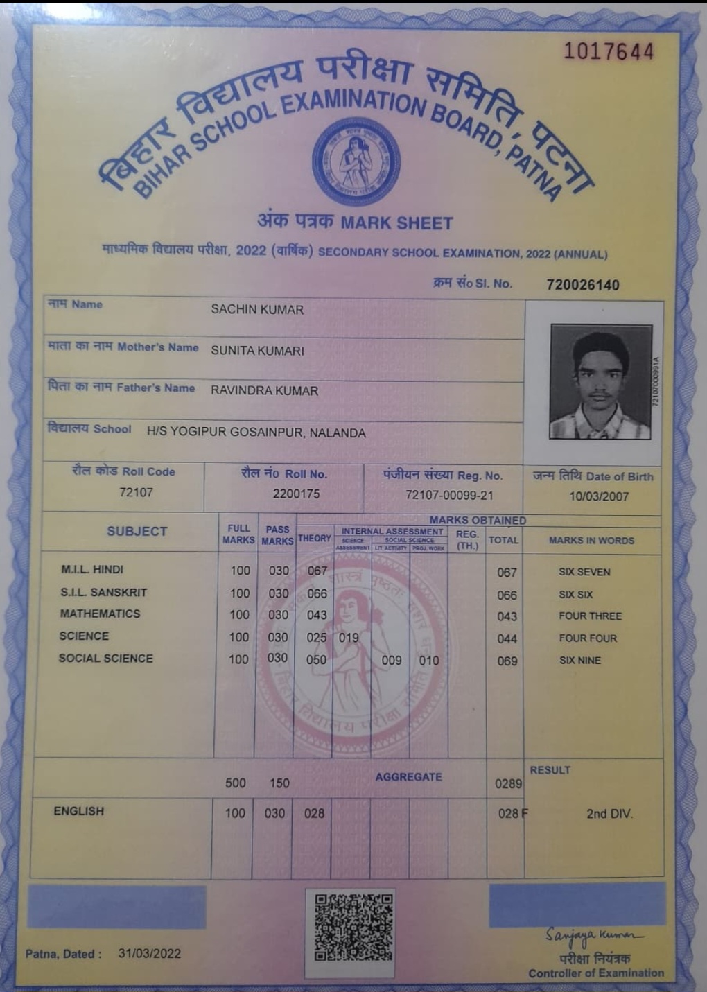| Exam | Full Marks | Pass Marks | Marks Obtained |