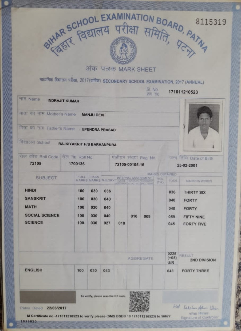 | Exam | Full Marks | Pass Marks | Marks Obtained |