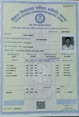 | Exam | Full Marks | Pass Marks | Marks Obtained |