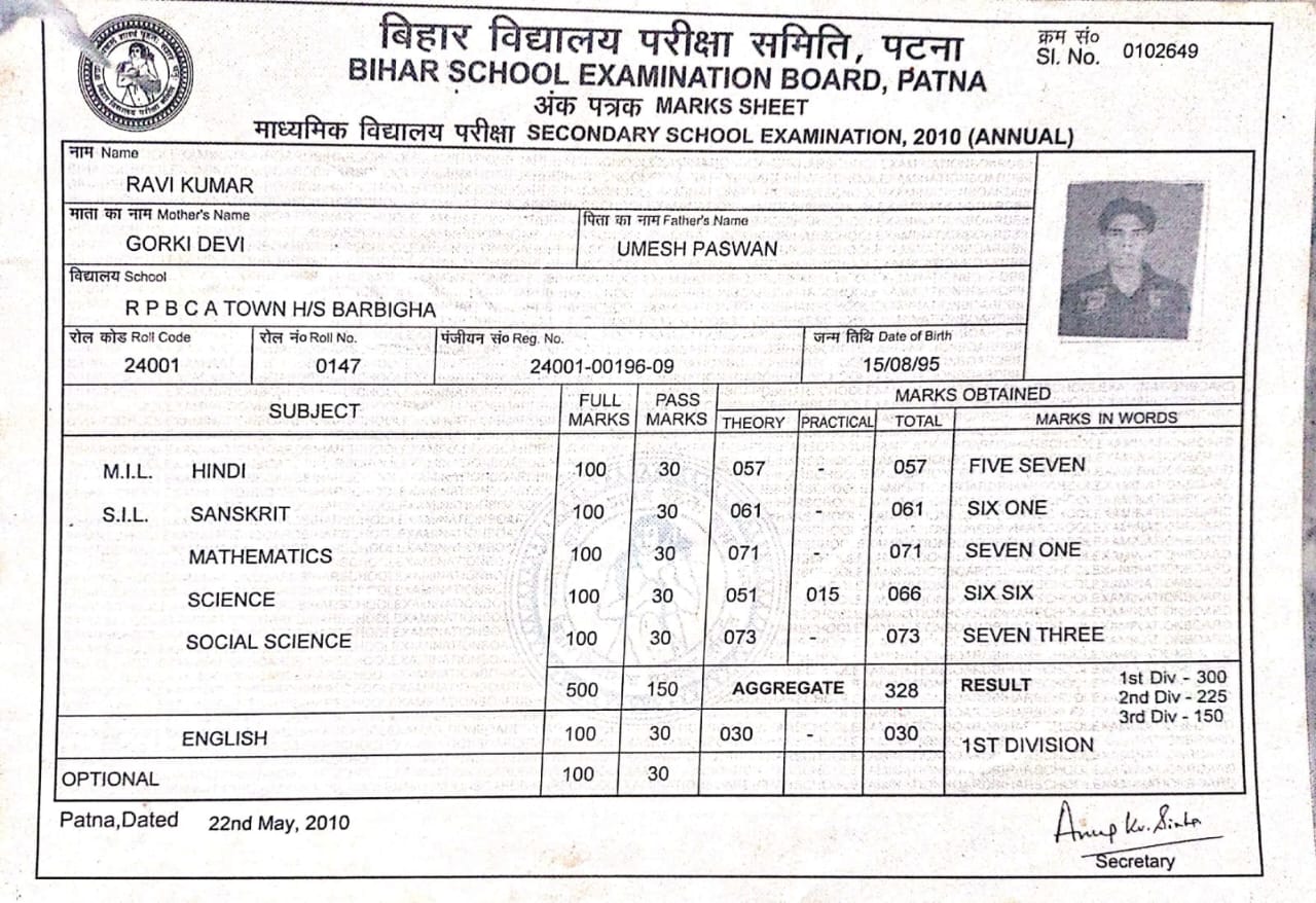 | Exam | Full Marks | Pass Marks | Marks Obtained |