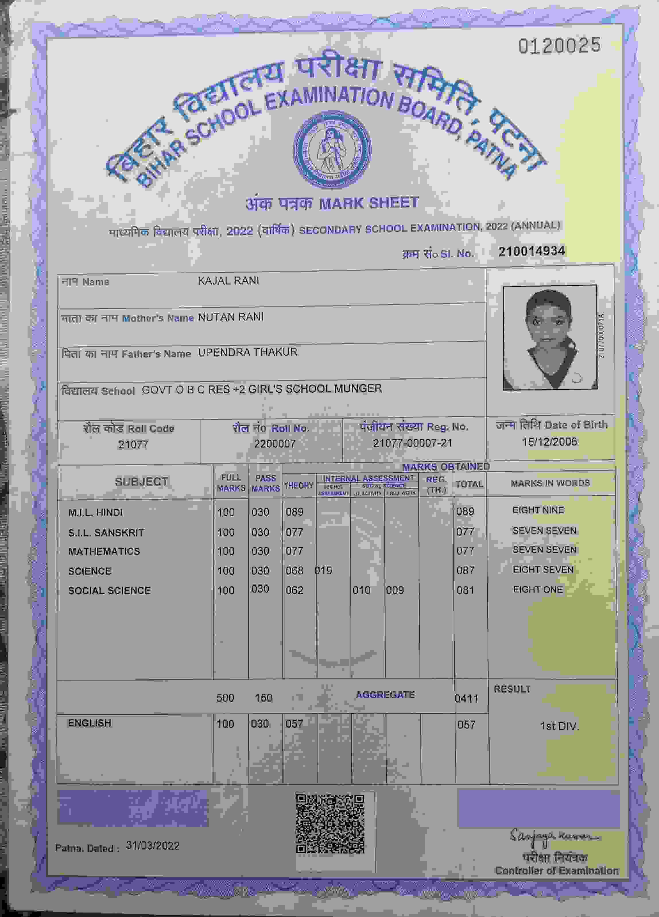 | Exam | Full Marks | Pass Marks | Marks Obtained |