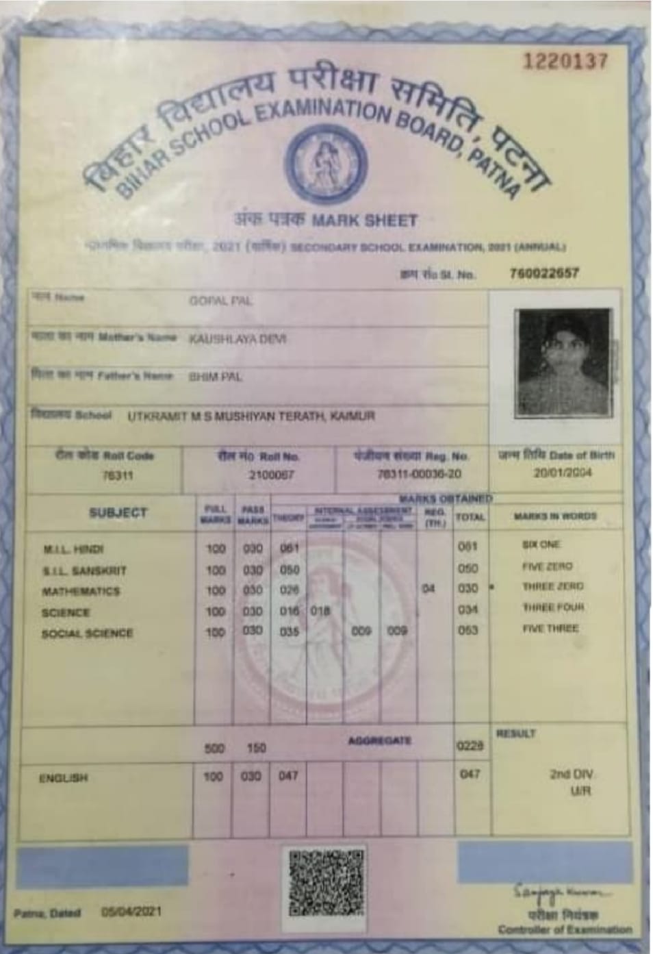 | Exam | Full Marks | Pass Marks | Marks Obtained |