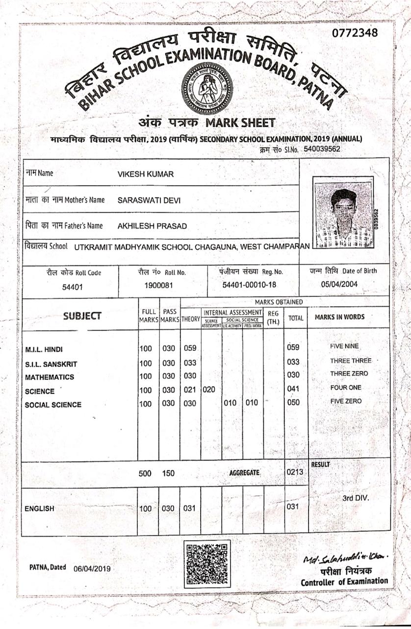 | Exam | Full Marks | Pass Marks | Marks Obtained |