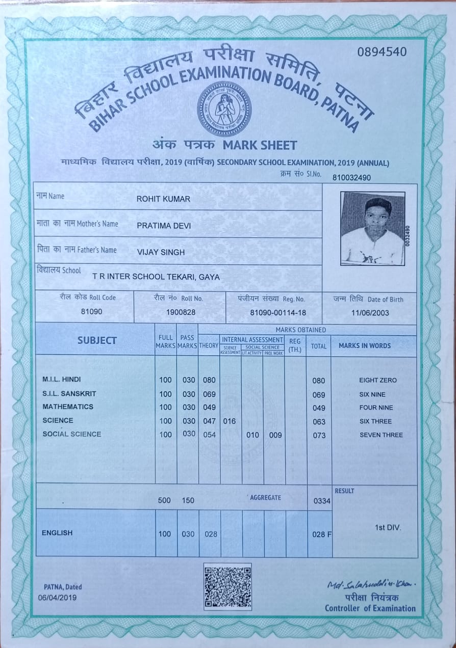 | Exam | Full Marks | Pass Marks | Marks Obtained |