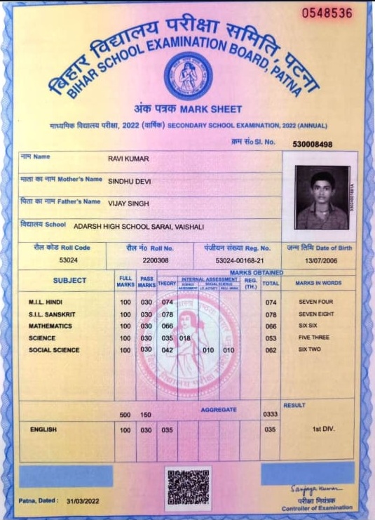 | Exam | Full Marks | Pass Marks | Marks Obtained |