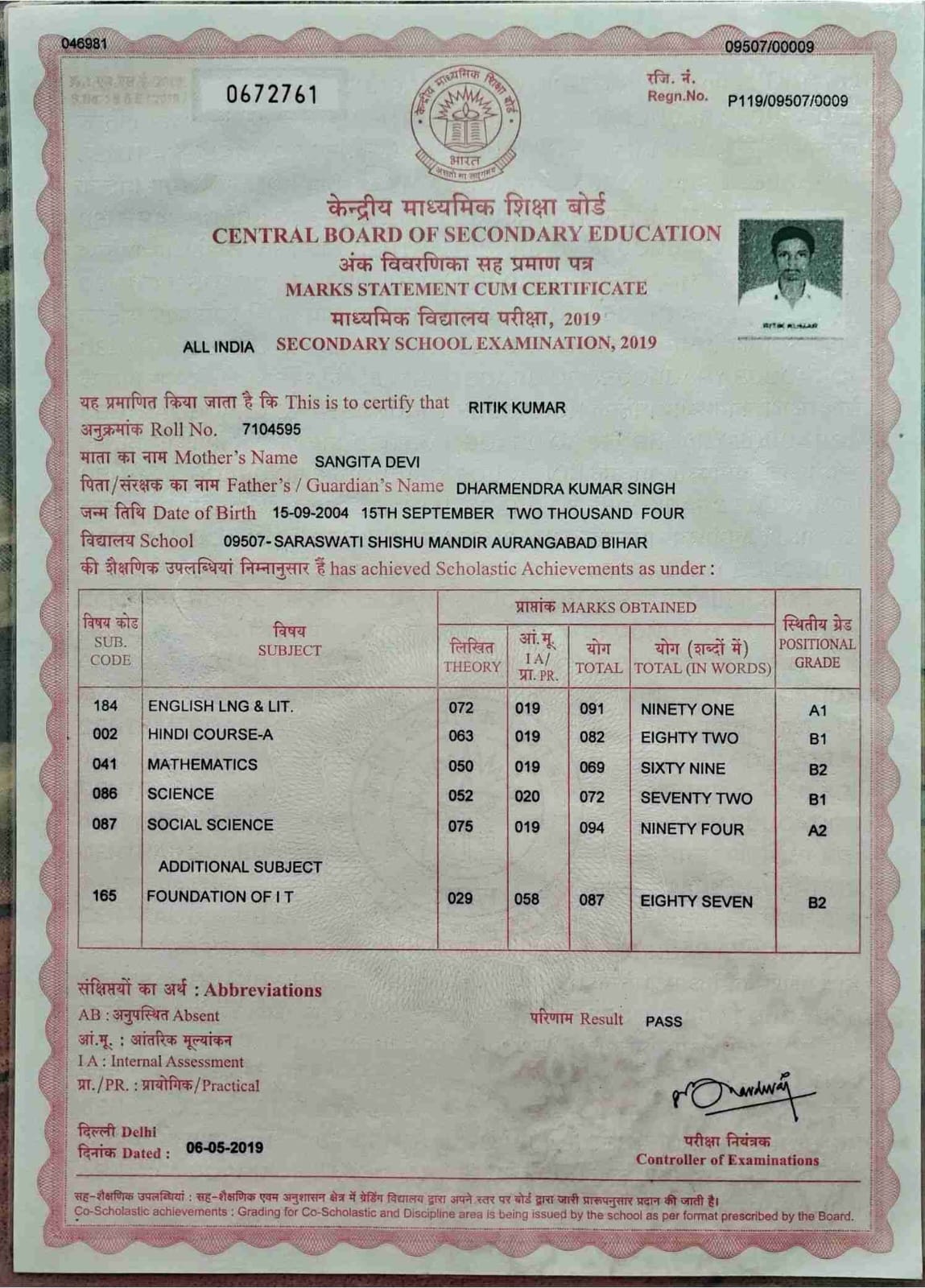 | Exam | Full Marks | Pass Marks | Marks Obtained |