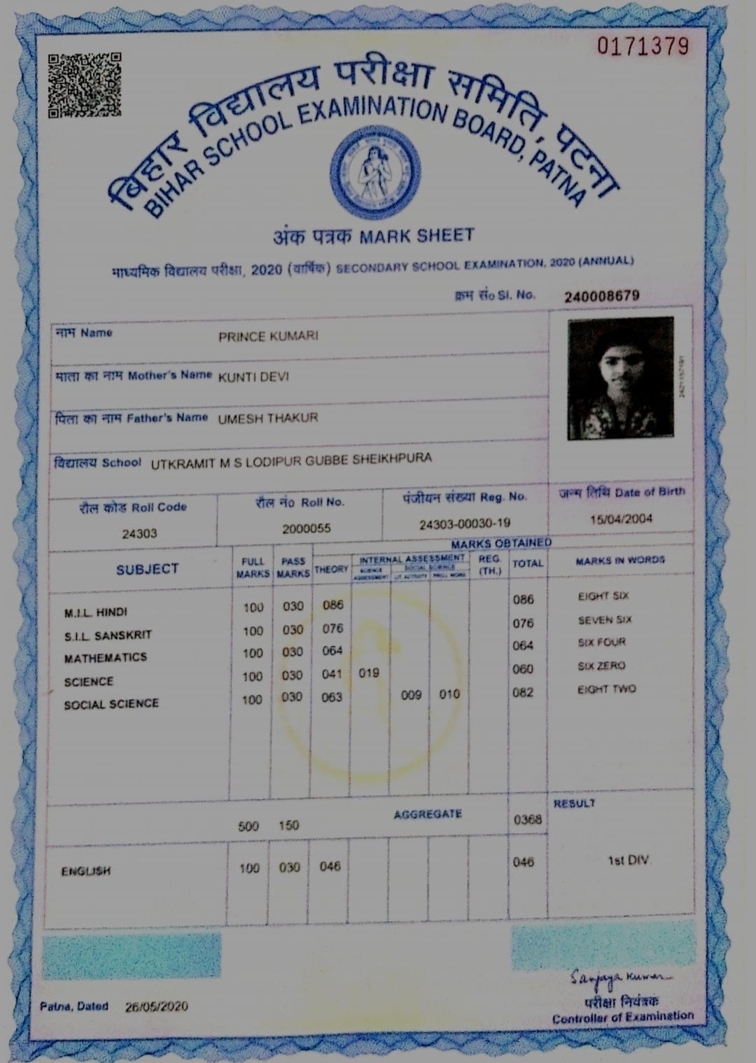 | Exam | Full Marks | Pass Marks | Marks Obtained |
