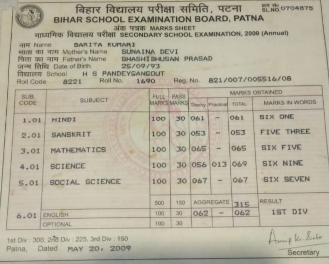 | Exam | Full Marks | Pass Marks | Marks Obtained |