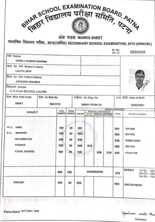 | Exam | Full Marks | Pass Marks | Marks Obtained |