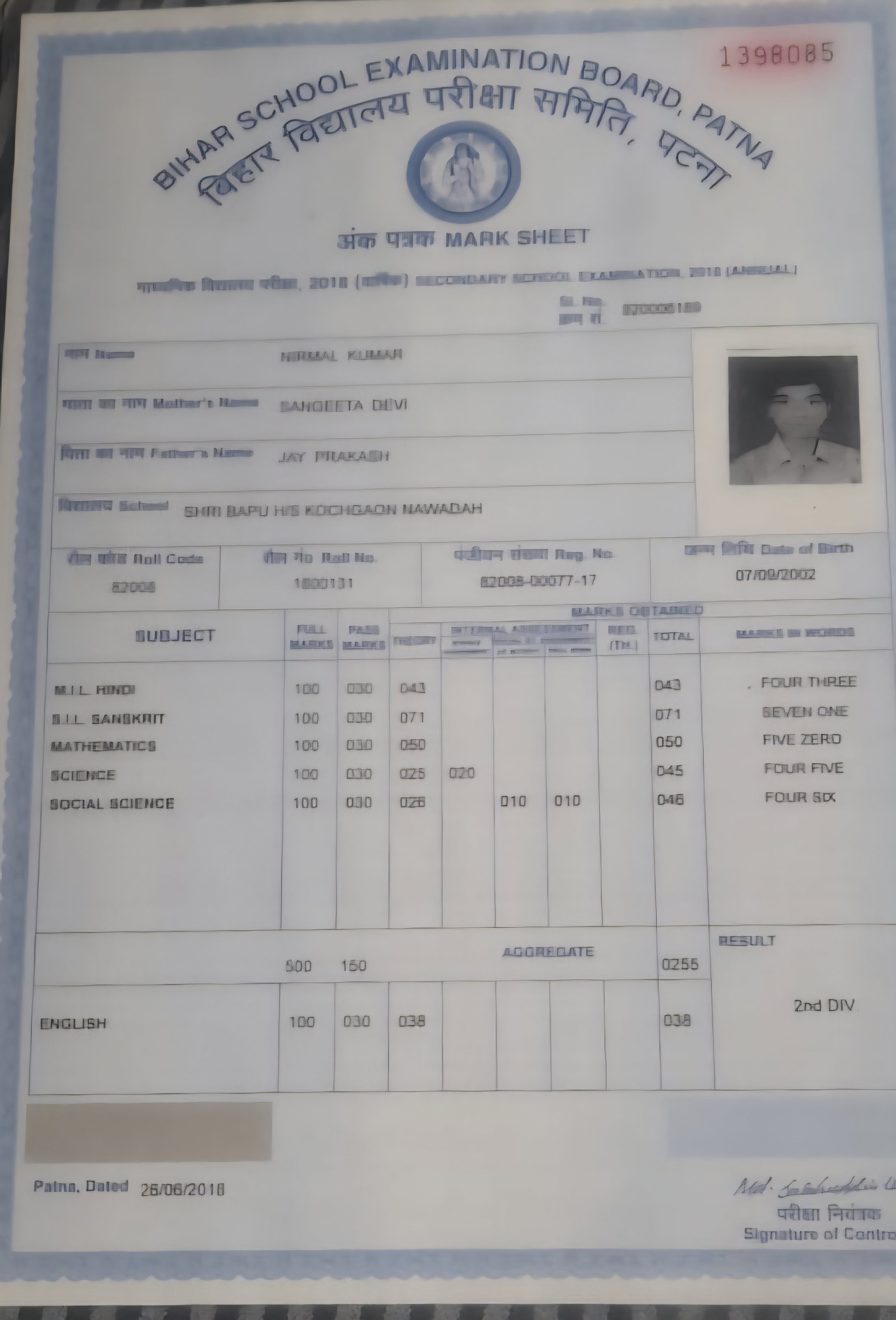 | Exam | Full Marks | Pass Marks | Marks Obtained |