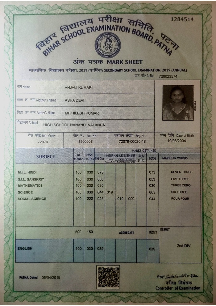 | Exam | Full Marks | Pass Marks | Marks Obtained |