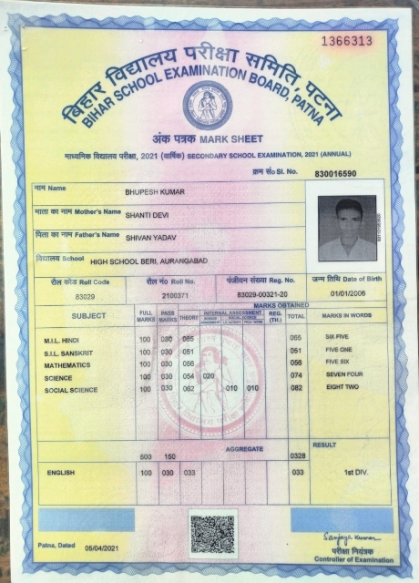 | Exam | Full Marks | Pass Marks | Marks Obtained |