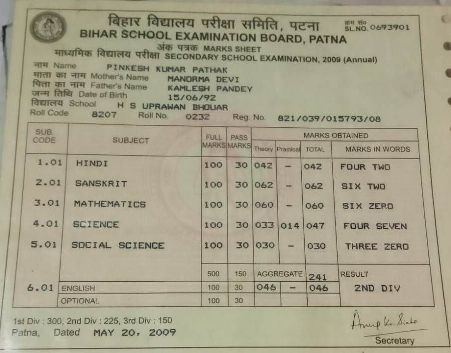 | Exam | Full Marks | Pass Marks | Marks Obtained |