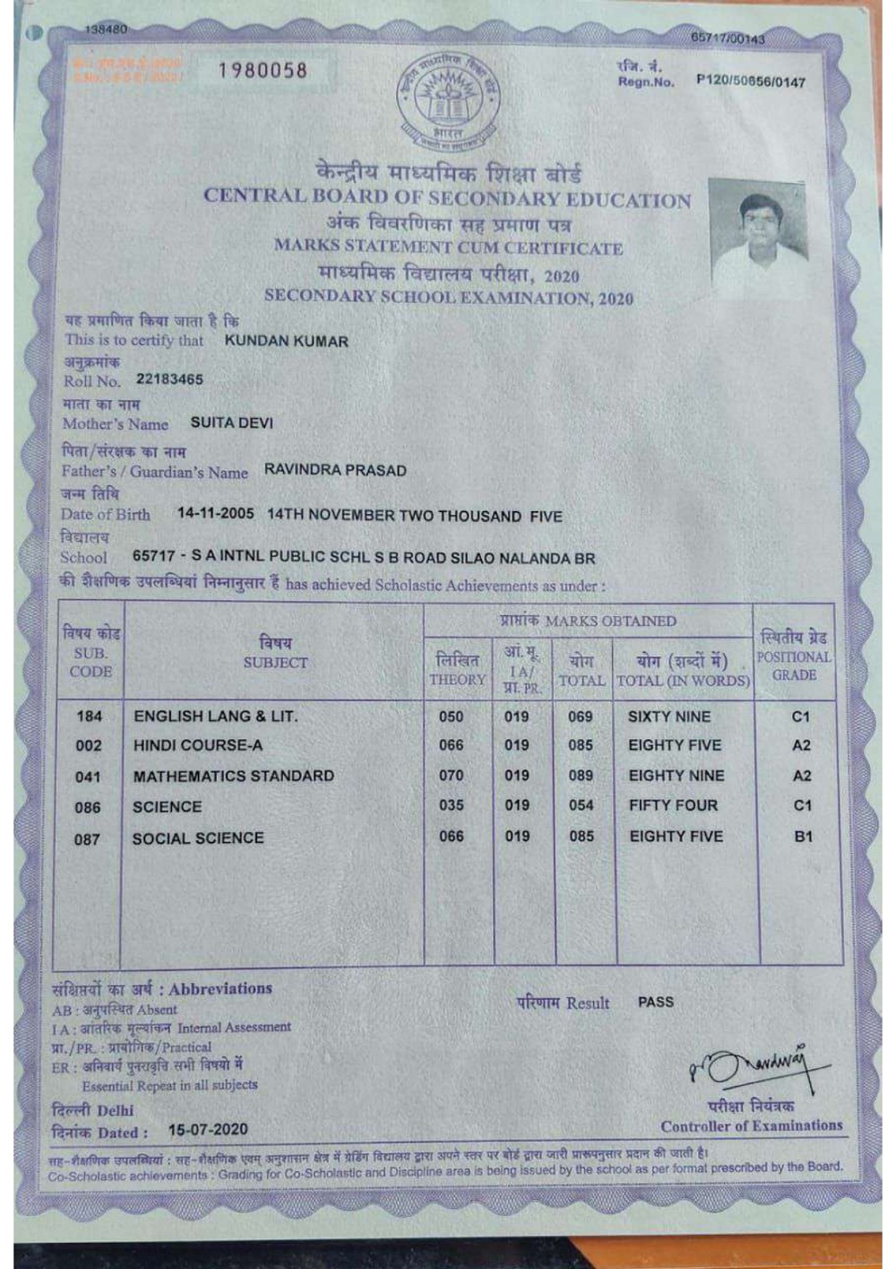 | Exam | Full Marks | Pass Marks | Marks Obtained |