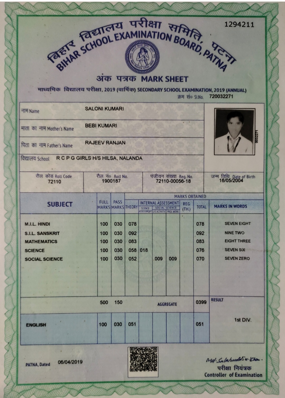 | Exam | Full Marks | Pass Marks | Marks Obtained |