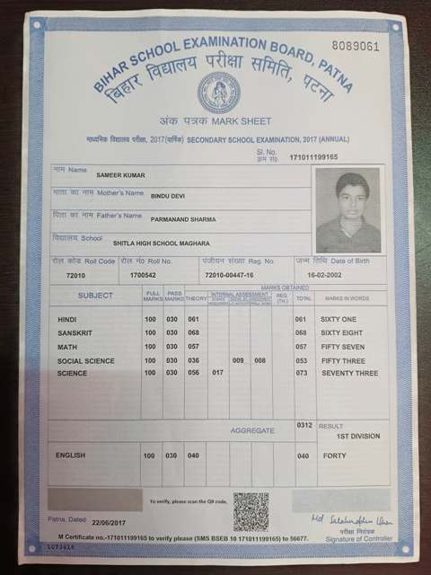 | Exam | Full Marks | Pass Marks | Marks Obtained |