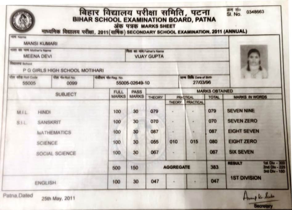 | Exam | Full Marks | Pass Marks | Marks Obtained |