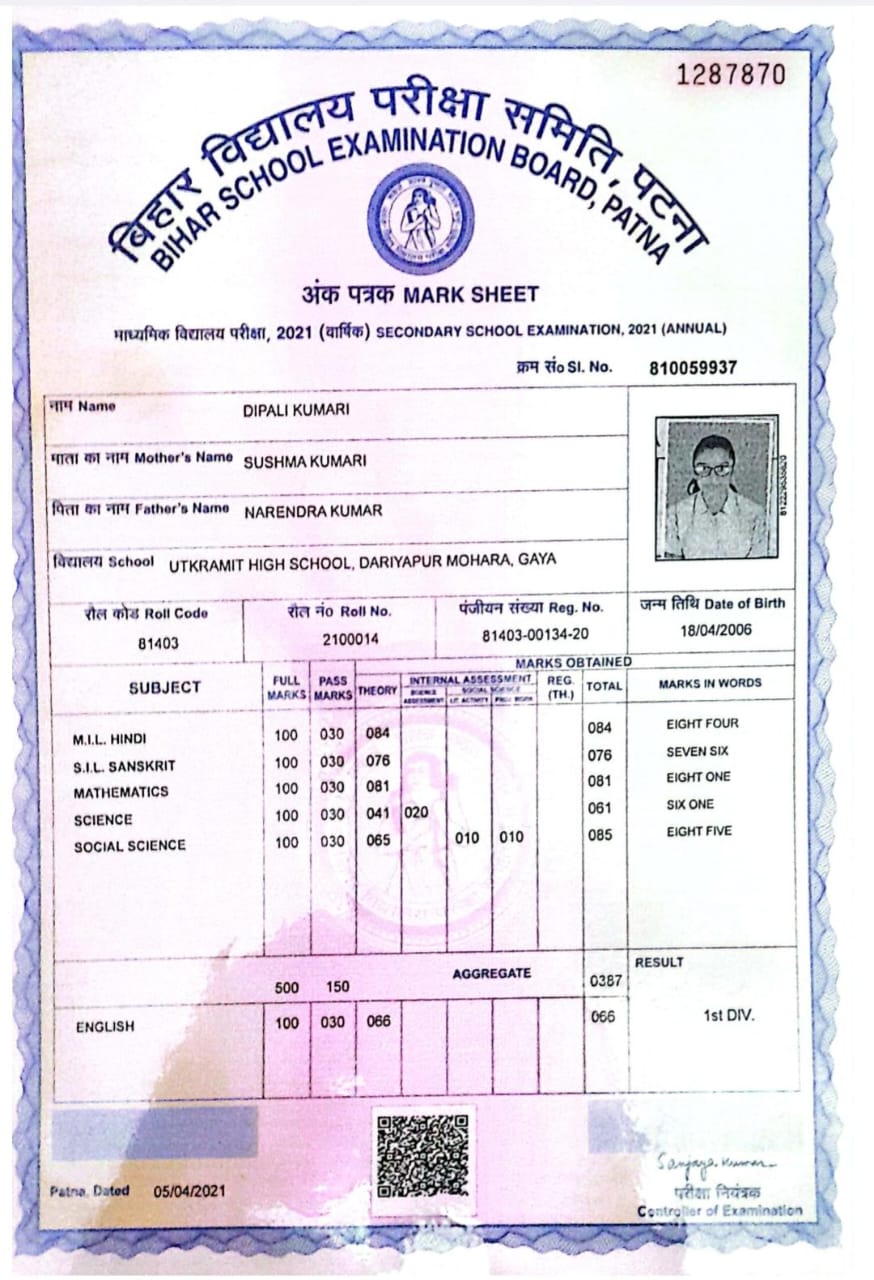 | Exam | Full Marks | Pass Marks | Marks Obtained |
