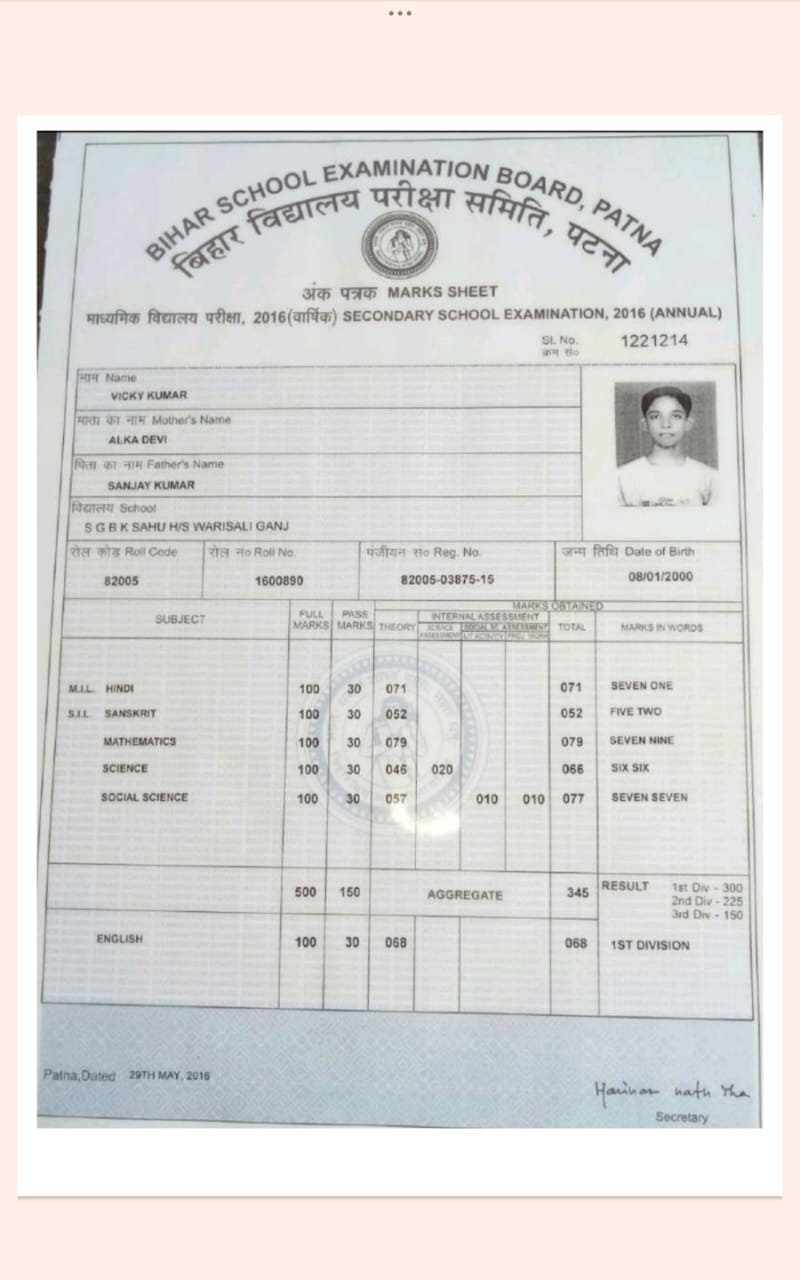 | Exam | Full Marks | Pass Marks | Marks Obtained |