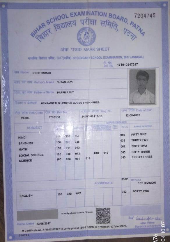 | Exam | Full Marks | Pass Marks | Marks Obtained |