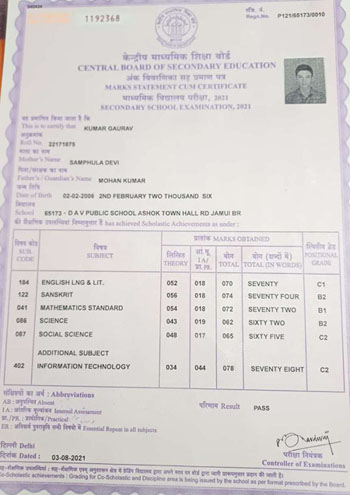 | Exam | Full Marks | Pass Marks | Marks Obtained |