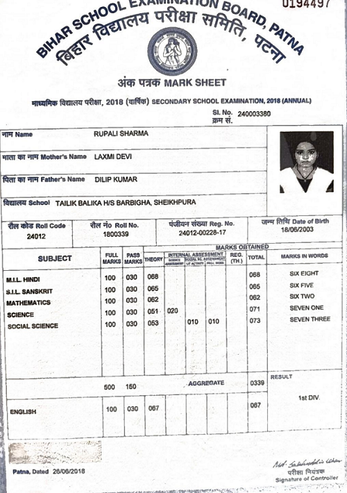 | Exam | Full Marks | Pass Marks | Marks Obtained |