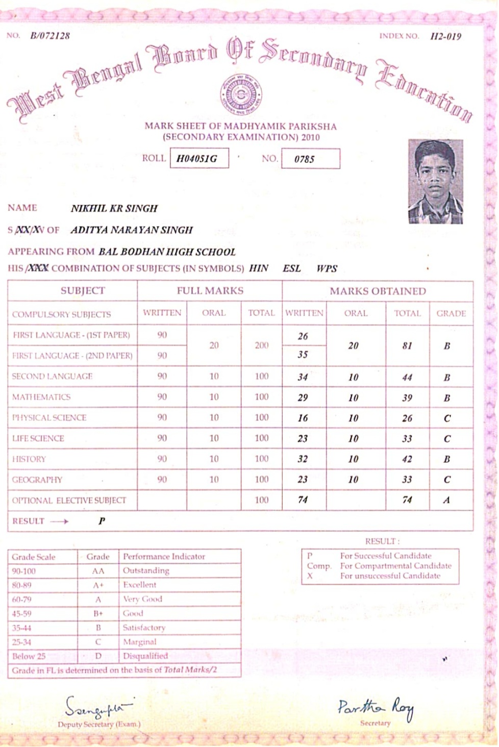 | Exam | Full Marks | Pass Marks | Marks Obtained |