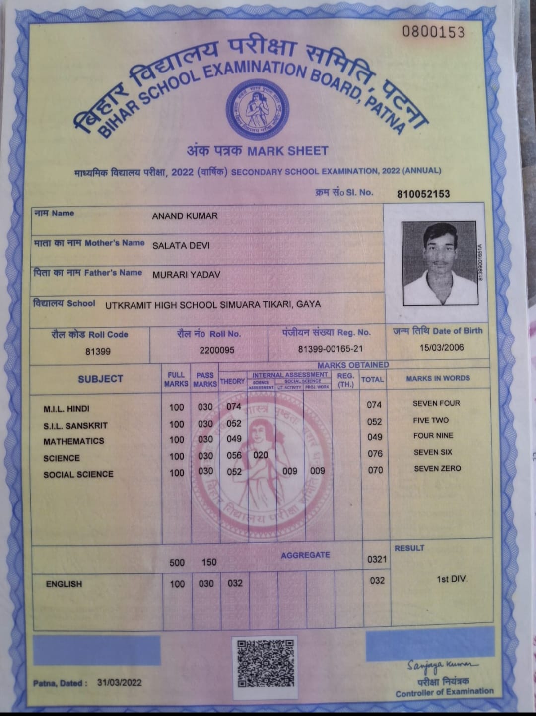 | Exam | Full Marks | Pass Marks | Marks Obtained |