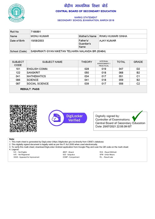 | Exam | Full Marks | Pass Marks | Marks Obtained |