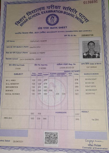 | Exam | Full Marks | Pass Marks | Marks Obtained |